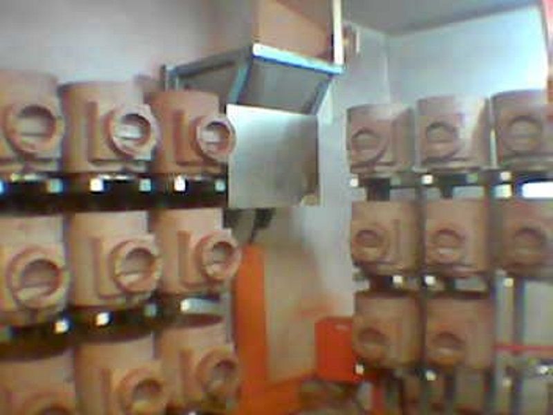 Iron ore samples from the outloading sampling plants are taken and poured into a bucket which is taken by the robot into the processing cell. Here the iron ore rocks are split into required weights, crushed, oven dried, and ground up before being put into small vials ready for processing. The crusher robot then puts the crushed samples into the outloading chute which is linked to a second ABB weighing robot. Here the sample weighed out to 0.005g and mixed with pre-weighed flux before being placed on the outloading tray for the chemists to process. This process determines the content of the iron ore to give chemical composition.